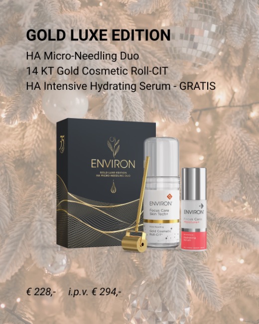 Deze feestdagen draait alles om stralen, maar dan wel met inhoud. Met het exclusieve Gold Luxe-Edition HA Micro-Needling Duo van Environ til je je skincare naar het hoogste niveau. Deze prachtige set is ontworpen om de opname van actieve ingrediënten te maximaliseren én je huid intens te hydrateren en verjongen.