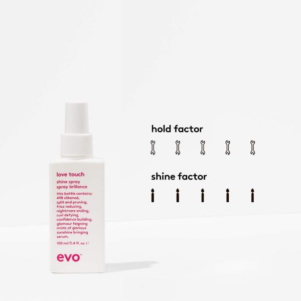 Love Touch Shine Spray geeft een stralende glans over afgewerkte kapsels. Deze glansspray kan worden aangebracht op nat of droog haar en verbetert de conditie en doorkambaarheid van het haar. Voor extra glans en een gepolijste finish kun je Love Touch ook rechtstreeks op een borstel sprayen en door het haar borstelen.