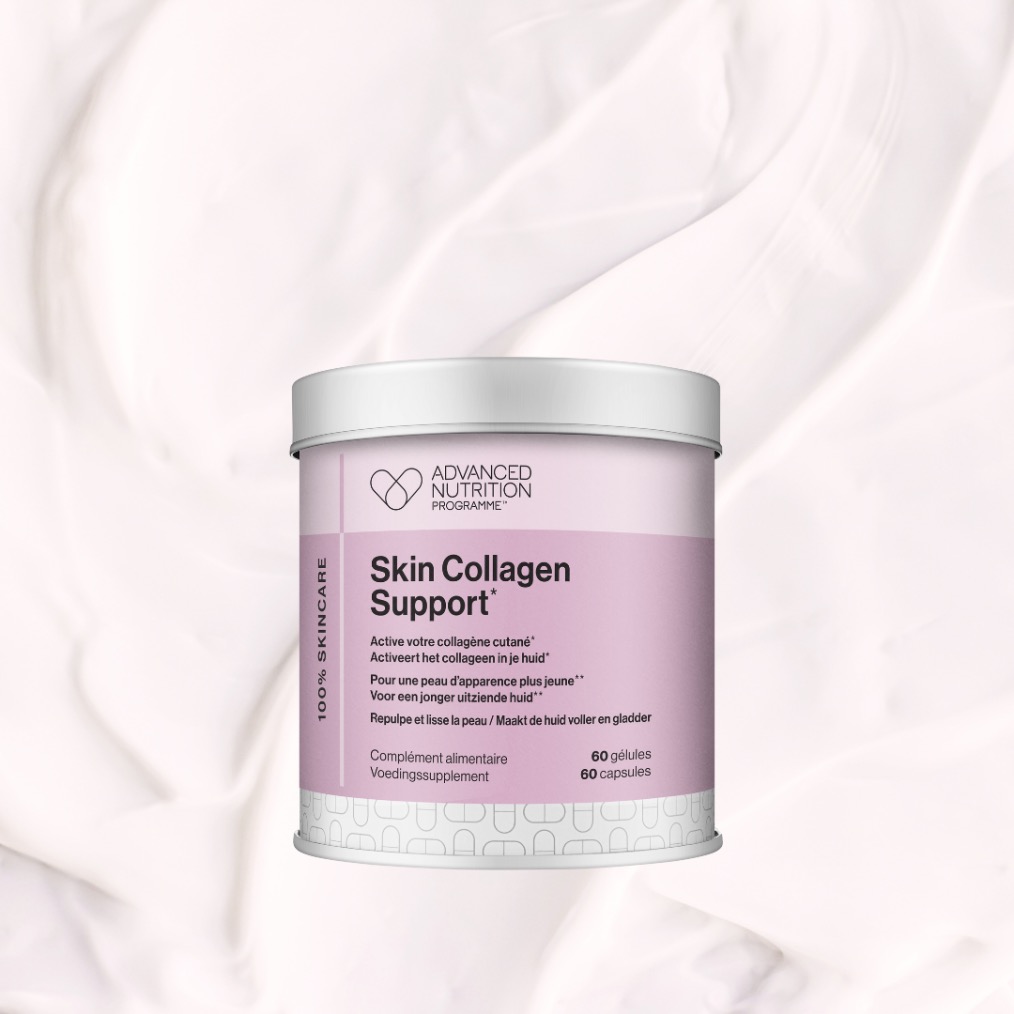 Skin Collagen Support activeert het collageen in de huid om de huid er jonger uit te laten zien. Naarmate we ouder worden, wordt onze huid minder elastisch en neemt de collageenproductie af. Dit supplement bevat de synergie van 5 ingrediënten: vitamine C, zink, MSM, druivenpitextract uit de Franse Champagnestreek en meloenconcentraat dat rijk is aan SOD (superoxidedismutase). Er zijn meer dan 150 studies die de werking van deze ingrediënten op de huid hebben aangetoond.