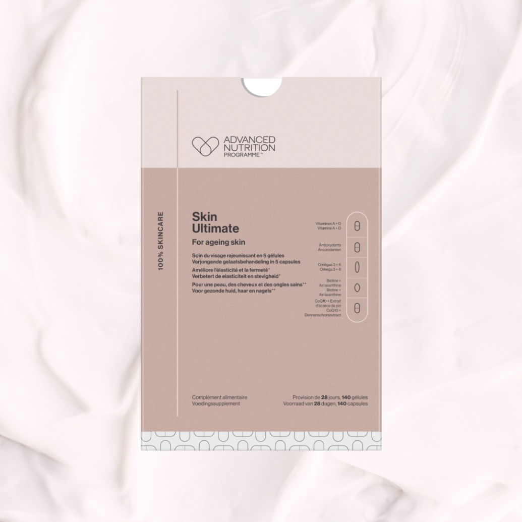 Skin Ultimate bevat een krachtige combinatie van 5 specifieke vitaminesupplementen en antioxidanten voor een gezonde huid, sterk haar en sterkere nagels, en een egalere teint. Dit supplementenpack is verpakt in 28 handige, afscheurbare beautyporties voor elke dag.